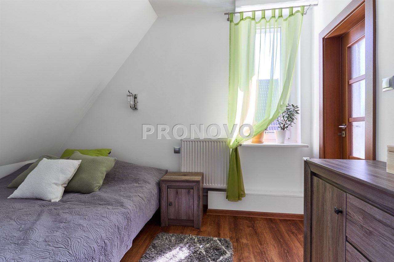 To nie jest zwykłe mieszkanie. To piętro domu z poddaszem, które daje Ci poczucie niezależności i przestrzeni, jakiej nie znajdziesz w bloku. Dom leży na działce ok 1000 m2, wydzielone są osobne ogrody, garaże oraz powierzchnia wspólna z sąsiadem.