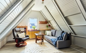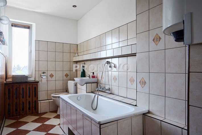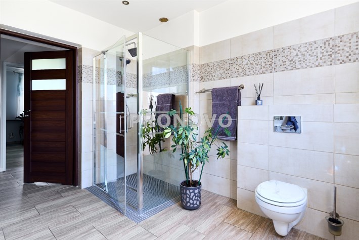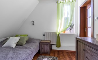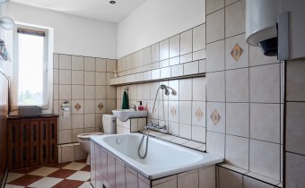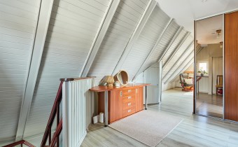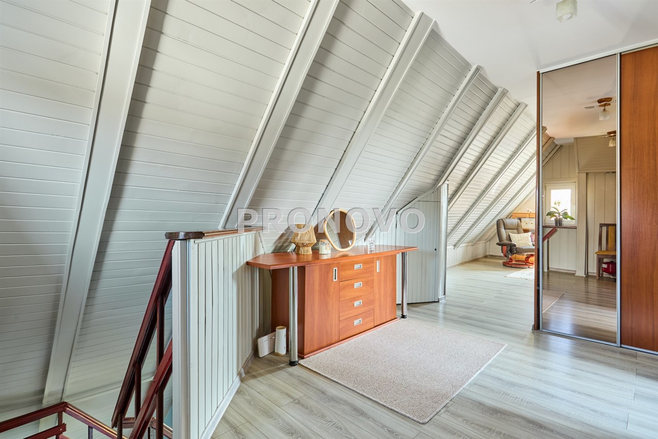 • na poddaszu: 2 pokoje (jeden pełni obecnie funkcję garderoby), korytarz, łazienka z wanną, schowek