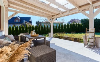 Dom, w którym po pracy naprawdę odpoczywasz — w ciszy, na własnym tarasie, wśród zieleni dającej prywatność.