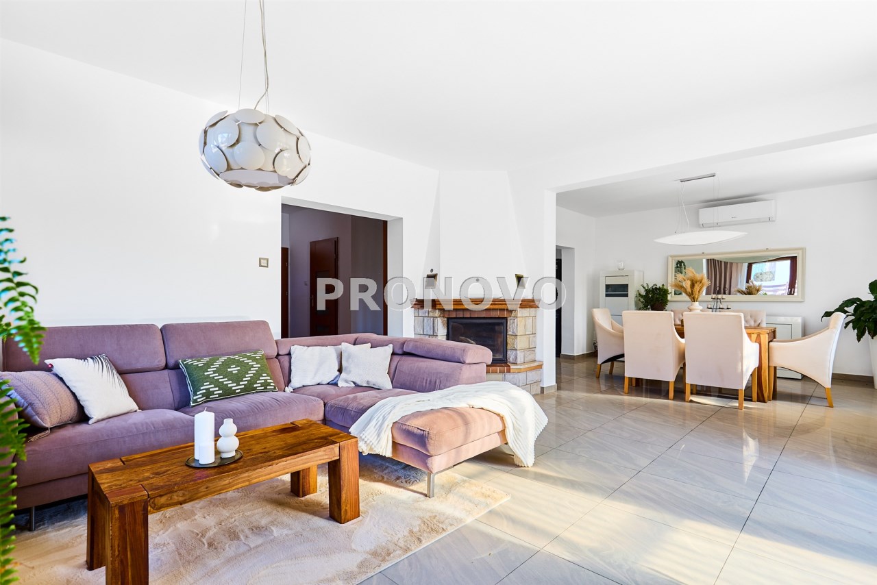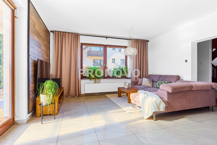 - duży, słoneczny salon z kominkiem,