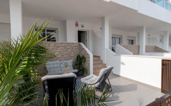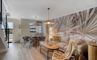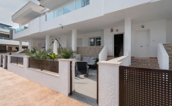 Na sprzedaż piękny, w pełni urządzony i gotowy do zamieszkania bliźniak położony na zamkniętym osiedlu w malowniczej części Torrevieja. Z okien rozciąga się widok na góry, morze i laguny.