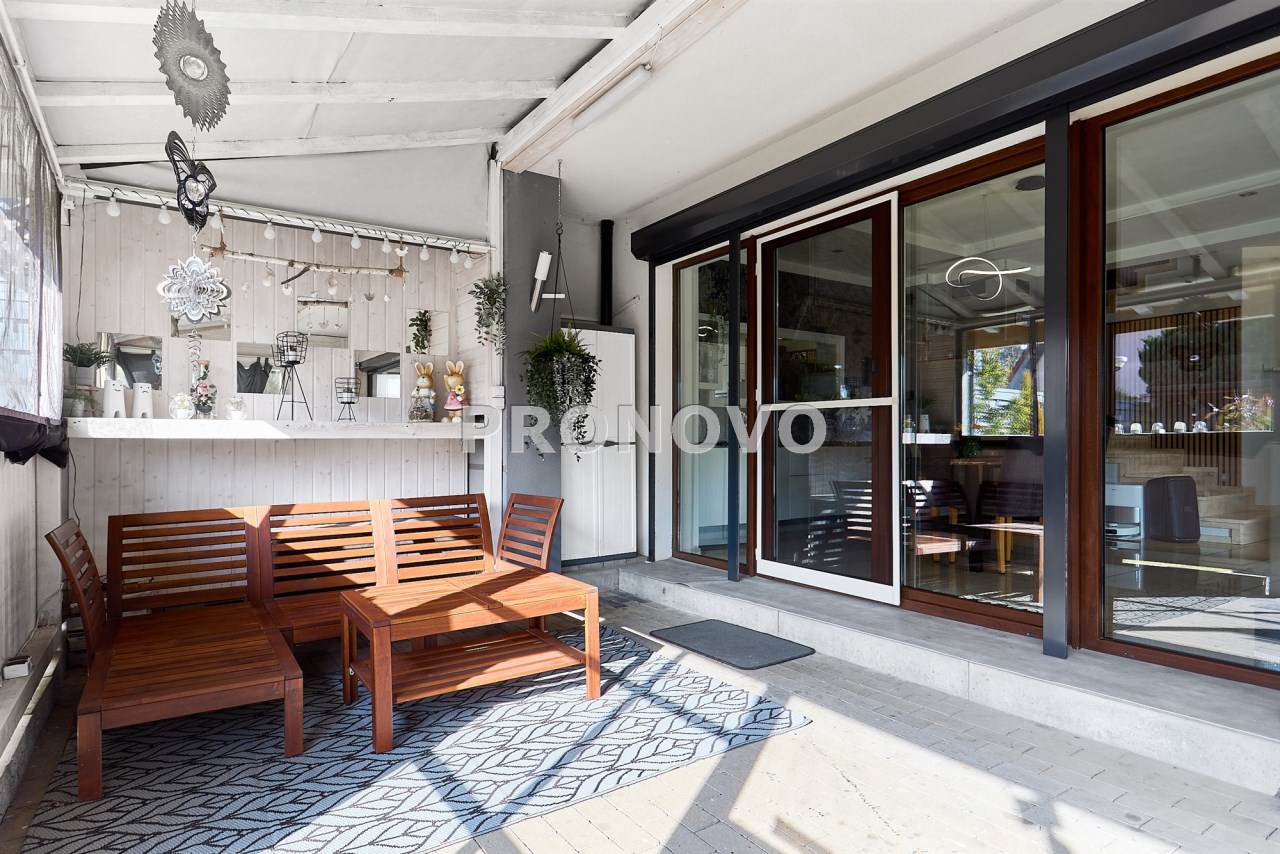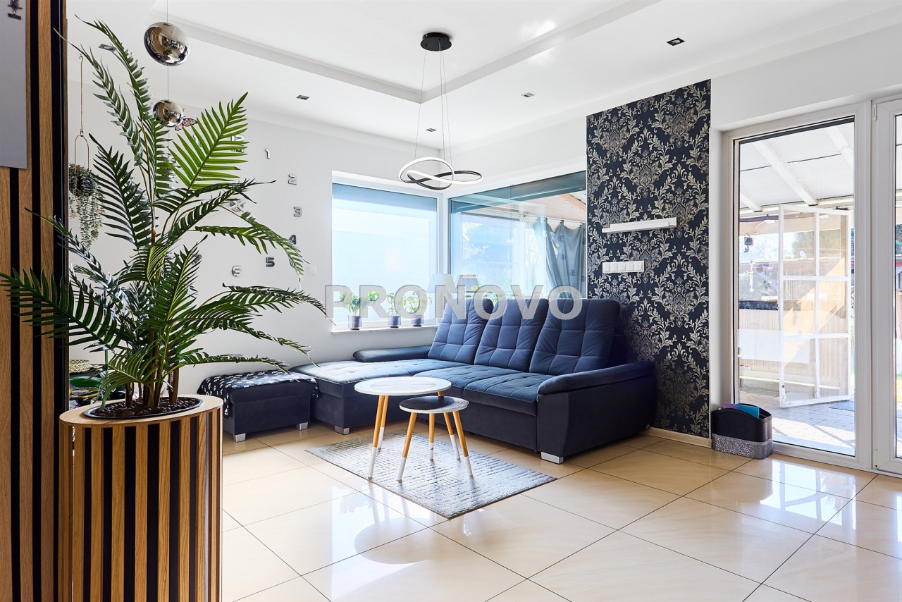 Do dyspozycji właścicieli jest również zagospodarowany ogród o powierzchni około 170 m² z automatycznym systemem nawadniania oraz dwoma domkami narzędziowymi.