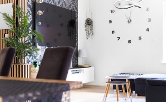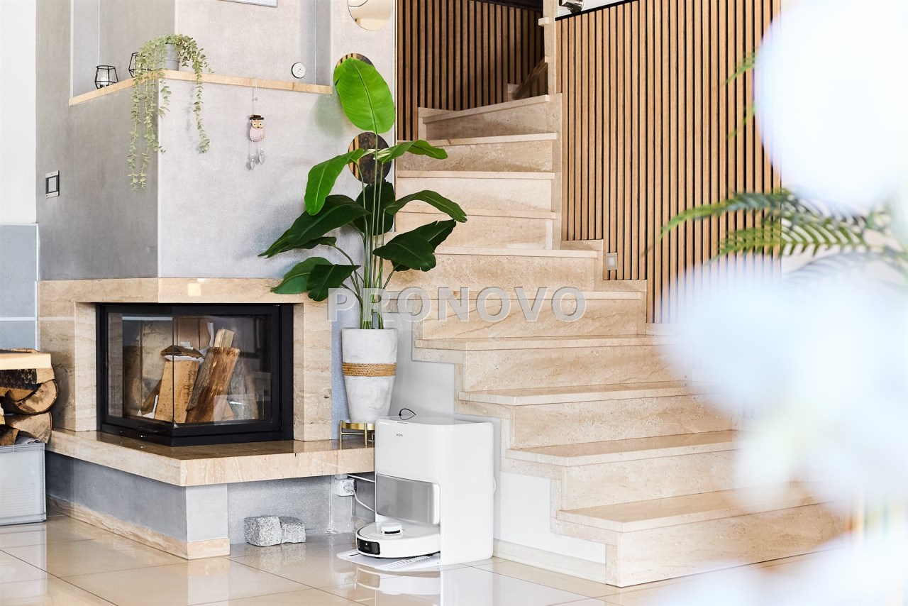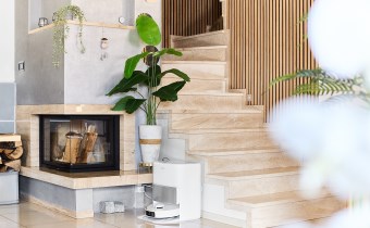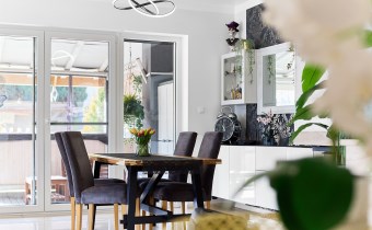 Dom ogrzewany jest piecem dwufunkcyjnym firmy Broetje, dodatkowo w salonie i łazienkach zastosowano ogrzewanie podłogowe, a w chłodniejsze dni klimat tworzy kominek z płaszczem wodnym.