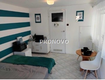 Dom wolnostojący 2-poziomowy z 1982r usytuowany na działkach o pow.462m2 z możliwością rozbudowy o następny poziom z poddaszem użytkowym włącznie . Na parterze 2 pokoje samodzielne świeżo po remoncie , po ok. 20m2 z łazienką i wc ( jeden z bezpośrednim wyjściem do ogródka ) oraz łazienka z wc . Na piętrze 5 pokoi ( jeden duży ok.25m2 , dwa następne po ok. 18m2 - 4- osobowe ) oraz 2 pokoje mniejsze 2-3 osobowe w większości z balkonem i łazienką z wc. W budynku znajdują się 2 pomieszczenia warsztatowe po ok. 12m2 każdy - z możliwoscią wykorzystania na pokoje gościnne , część podpiwniczona .Ogrzewanie centralne - kocioł ; węgiel ,drewno z możliwością przejścia na gaz, na dachu panele słoneczne 2.5kv co daje ok. 8 miesięcy podgrzewania wody za darmo. Standard średni