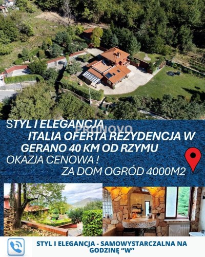 Proponuję zatrzymać się nad niesamowitą rezydencją w Gerano-Włochy położoną na powierzchni 4000m2, 40 km od Rzymu, 15 minut do Tivoli.