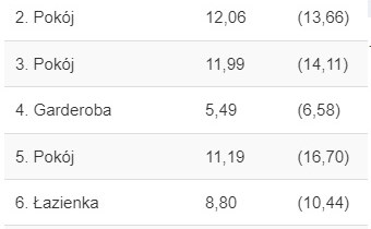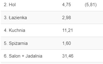 Powierzchnia pokoi 31,46; 13,66; 14,11; 16,17 m2