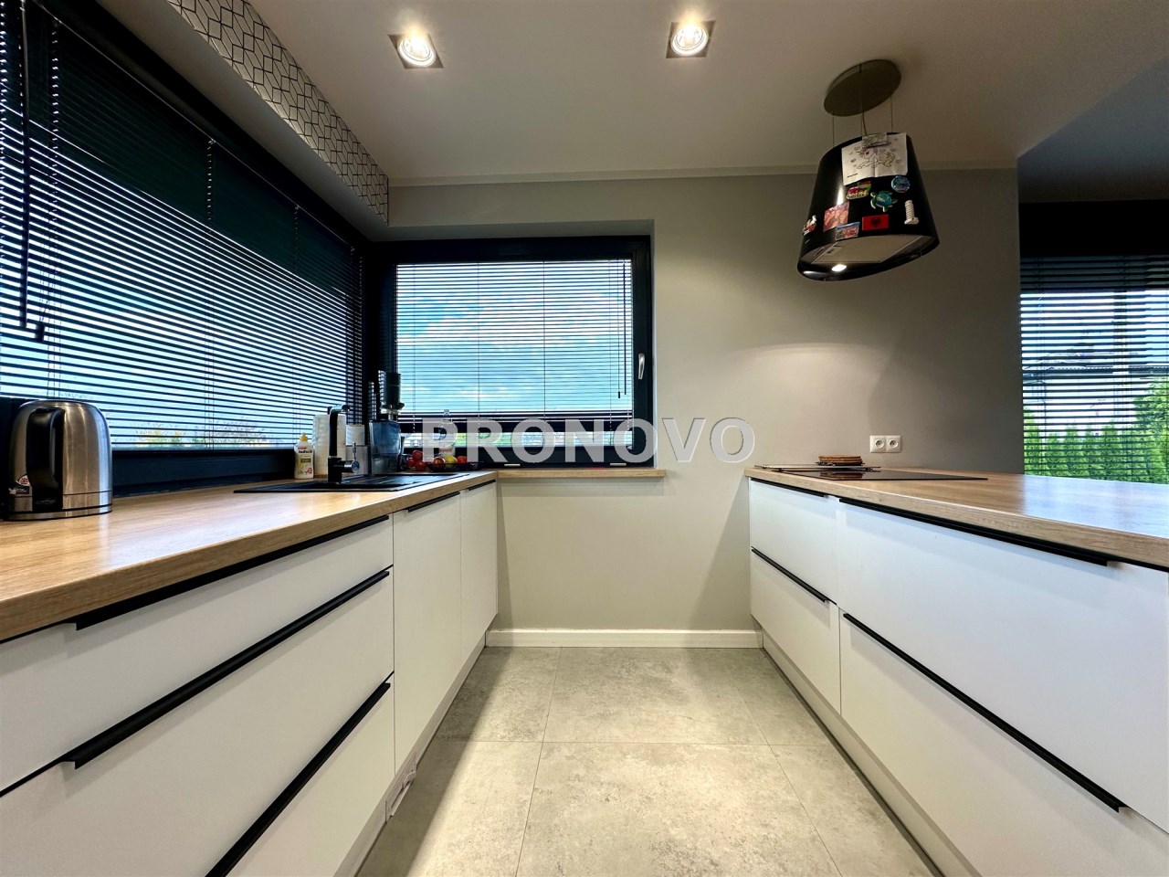 - kuchnia z ukrytą spiżarnią - nowoczesna zabudowa ze sprzętem AGD - 10,65m2