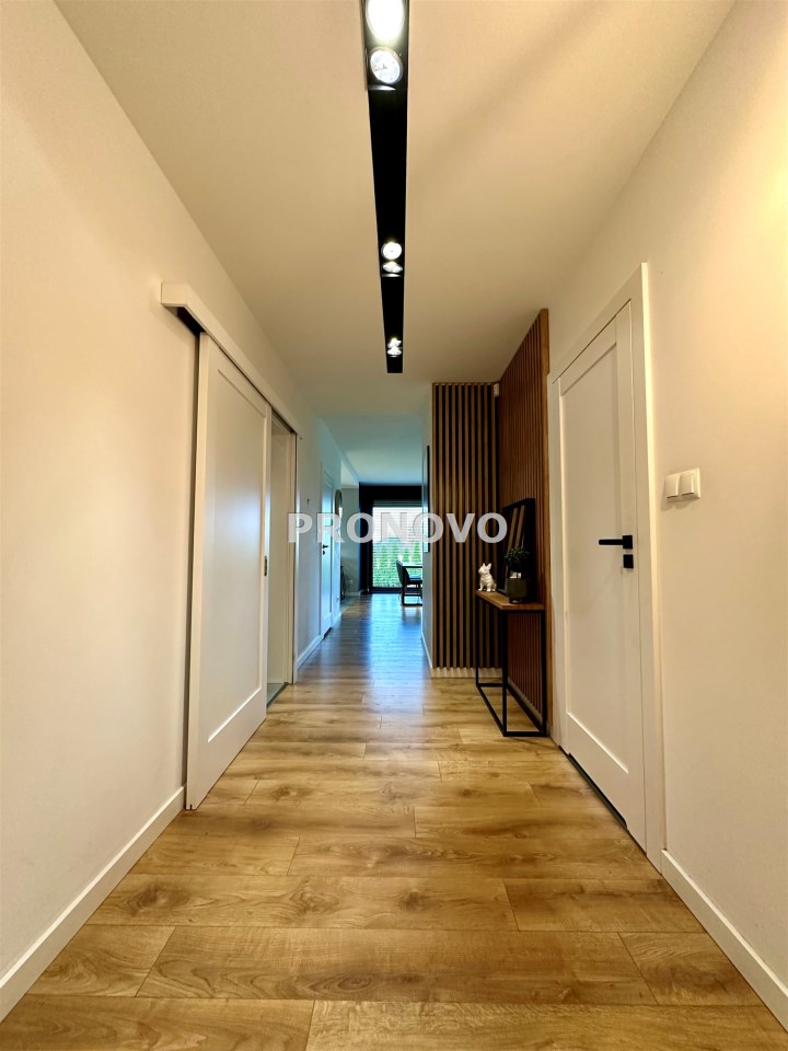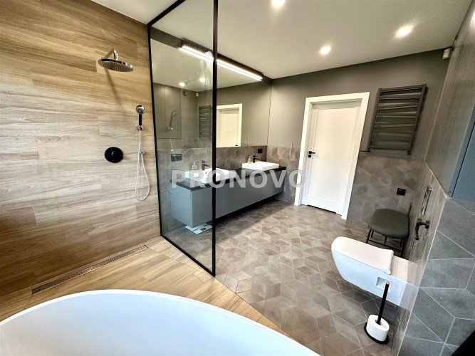 Dom wykończony w podwyższonym standardzie wykończenia. Indywidualne zabudowy na wymiar, baterie podtynkowe, markowej jakości sprzęty oraz armatura. Rozprowadzona instalacja centralnego odkurzacza.