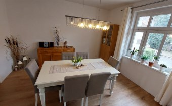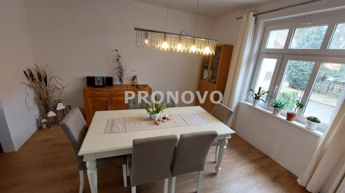 Dom położony przy jednej ze spokojniejszych ulic w Świnoujściu przy ul Grottgera. Bliźniak z cegły w dobrym stanie technicznym. działka ma kształt nieregularny, ogrodzona z przesuwną bramą. Na działce stoi garaż jednostanowiskowy. Na parterze jest przestronny przedpokój, piękny salon z kominkiem i z wyjściem na duży taras. Salon jadalnia i kuchnia tworzą jedną całość, tylko umeblowanie określa funkcję tych pomieszczeń. Na tym poziomie jest jeszcze sypialnia i dość duża łazienka. Piękne drewniane schody prowadzą na I piętro, gdzie są 3 sypialnie, niewielka kuchnia, łazienka i dodatkowe WC. Jest jeszcze poddasze, gdzie może być dodatkowy pokój. Pod całym budynkiem są duże, suche piwnice ( 4) z wyjściem do ogrodu. Ogrzewanie i ciepła woda z piecyka gazowego, urokliwy kominek daje ciepło w salonie i jadalni. Właściciele wymienili instalacje wodne i elektryczne. Niskie koszty utrzymania. Okolica spokojna. Oferta na wyłączność. Zapraszam
