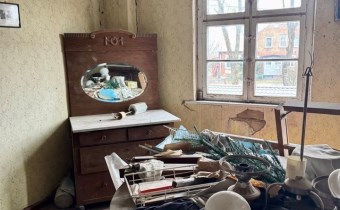 Jedno z mieszkań ma wejście od ulicy gdzie znajdują się dwa duże pokoje oraz kuchnia wraz z korytarzem. Drugie wejście jest usytuowane od podwórka z trzema dużymi pokojami z korytarzem i kuchnią. W tym lokalu znajduje się wejście na strych gdzie oprócz przestronnego strychu są jeszcze dwa oddzielne pokoje.