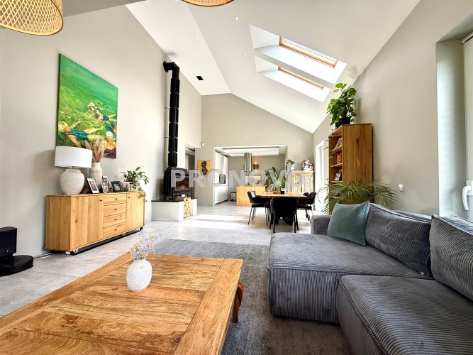 - przestronny salon z jadalnią (otwartą przestrzenią pod konstrukcje dachu ok. 4,5 wysokości tzw. pustka nad salonem)