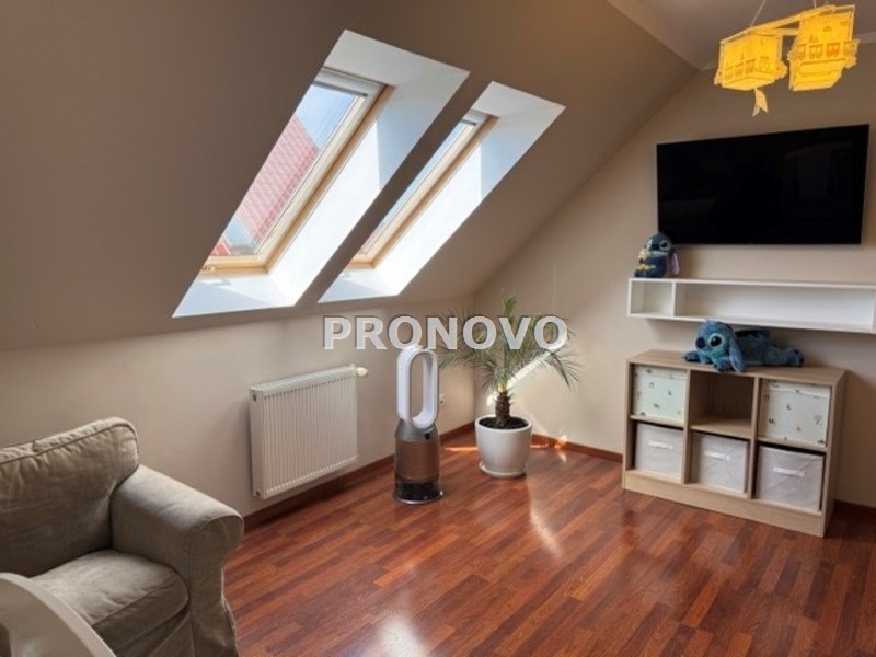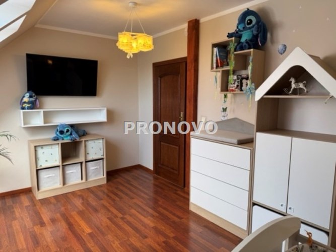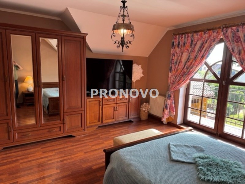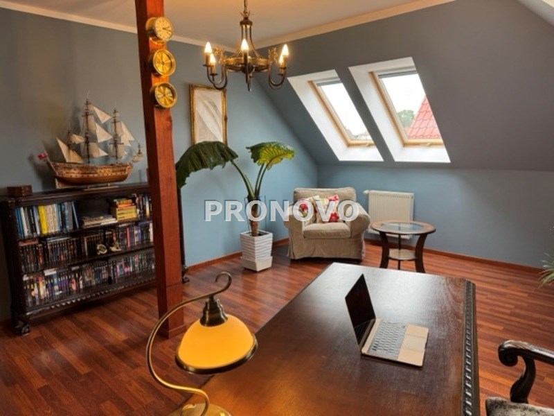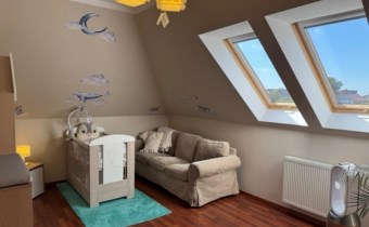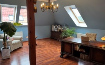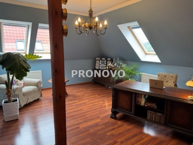 Poddasze: hall, 4 sypialnie (w tym główna z balkonem), łazienka.