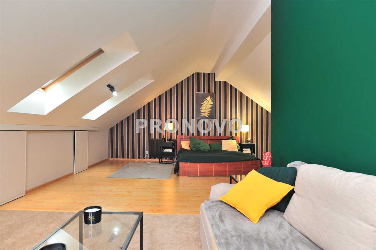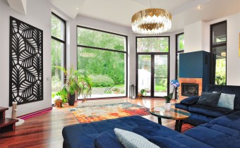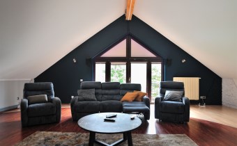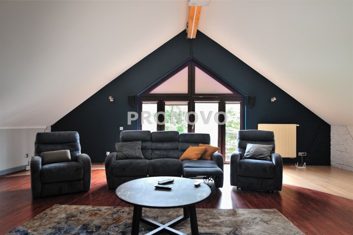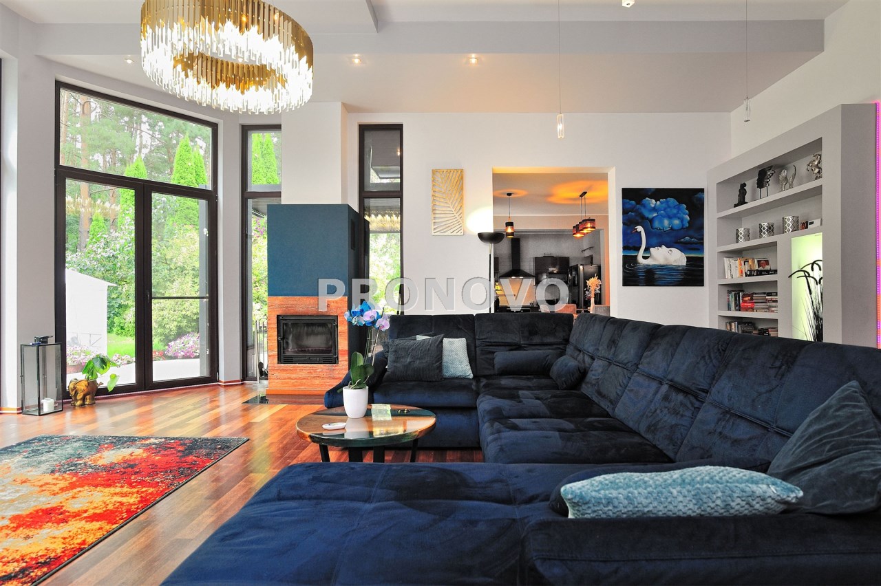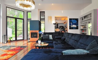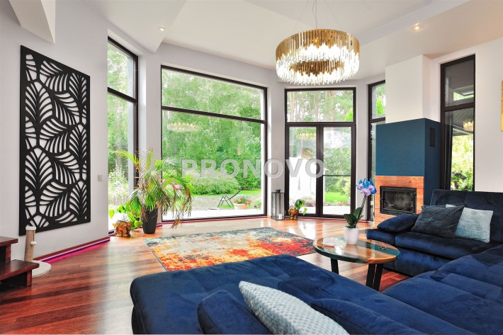 • przestronny salon z dużymi przeszkleniami i widokiem na ogród (ok. 40 m²),