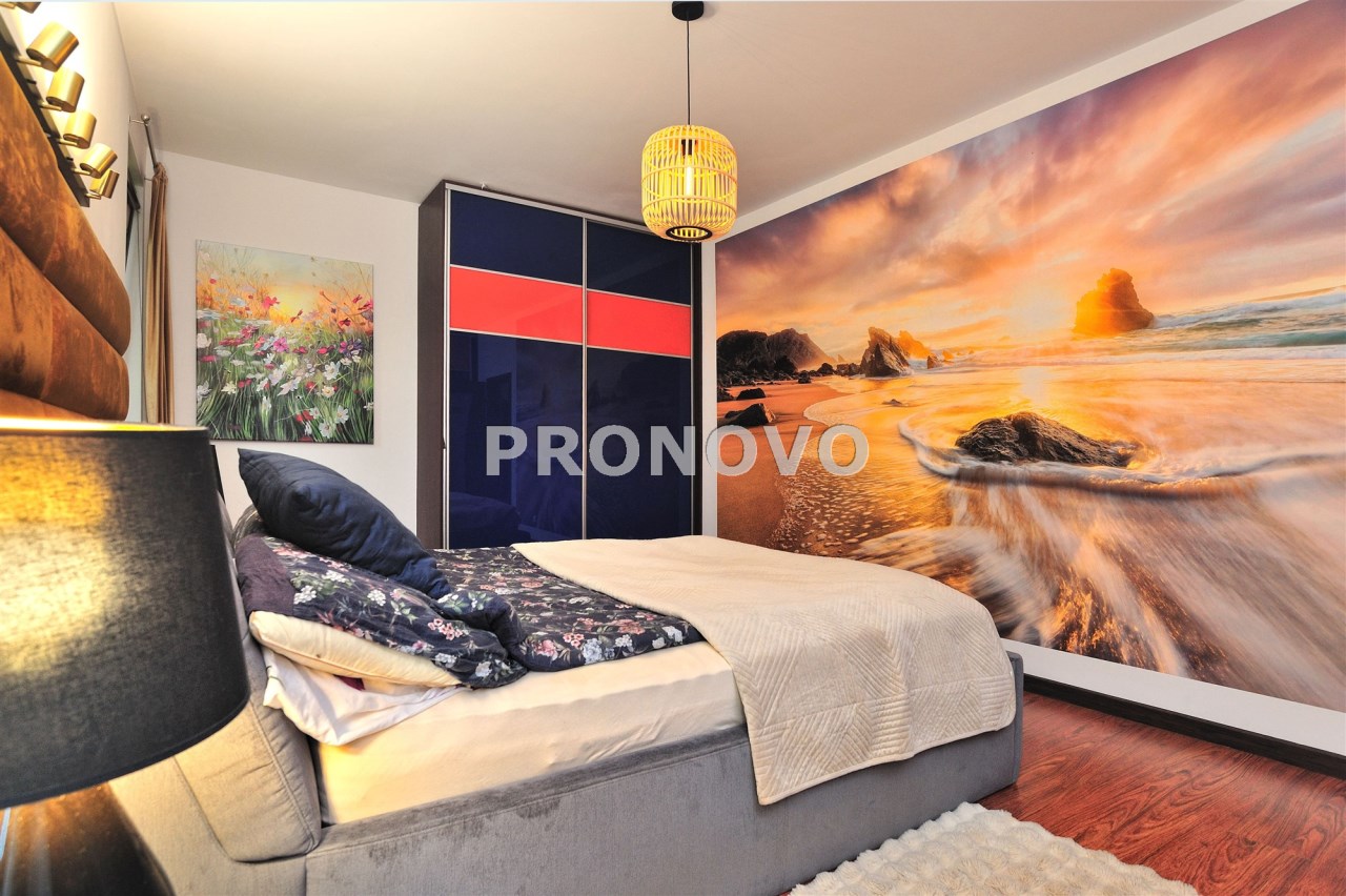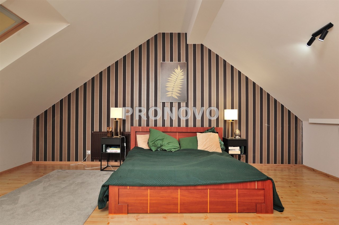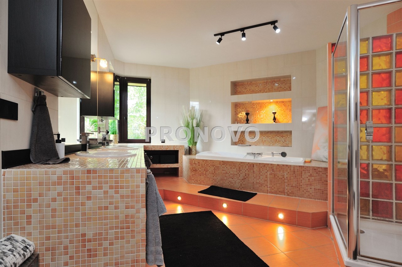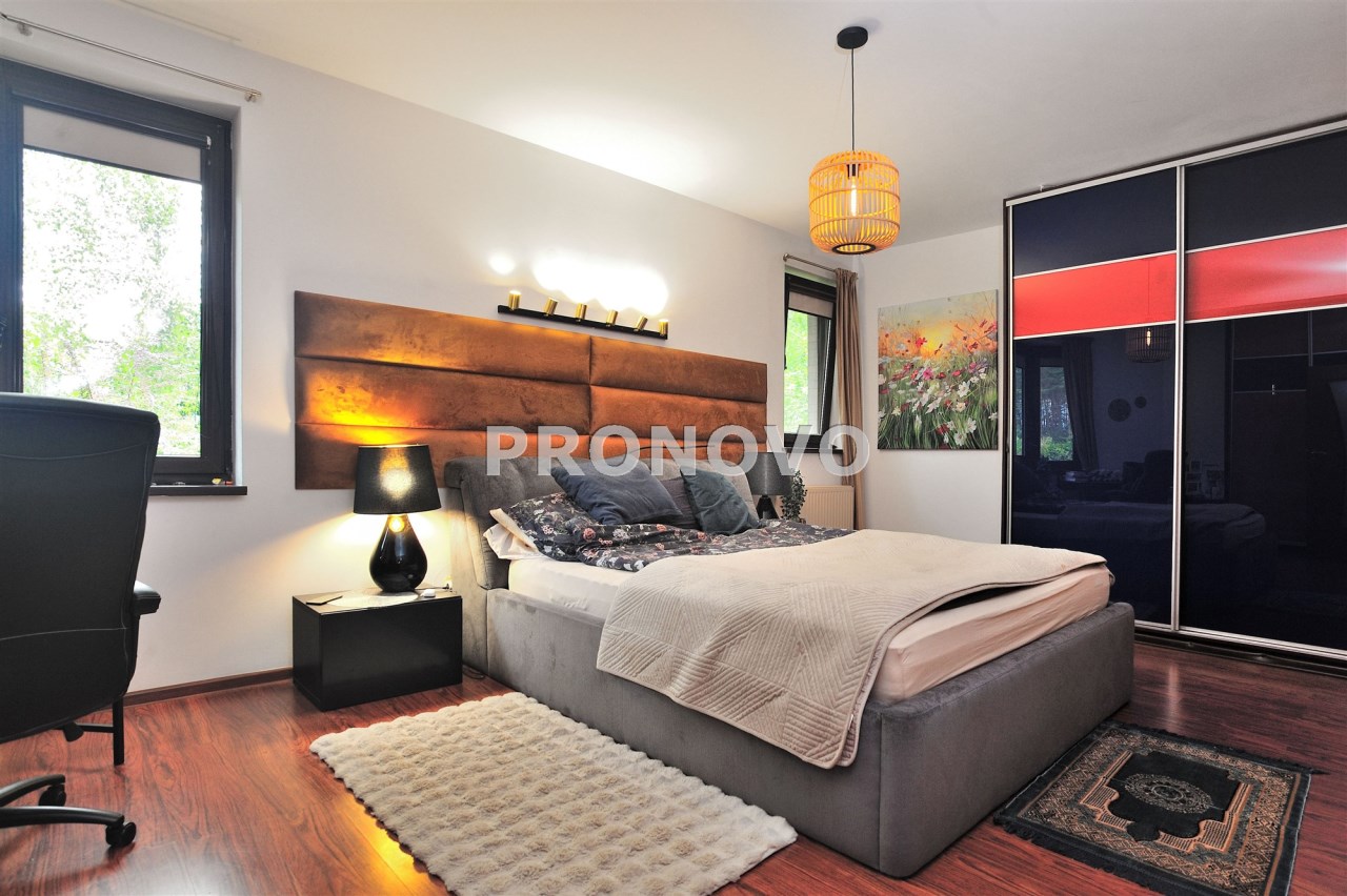 Wyposażenie obejmuje m.in.: system alarmowy, monitoring, klimatyzację, nowoczesne ogrzewanie gazowe oraz klimatyczne piece kaflowe.