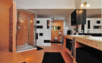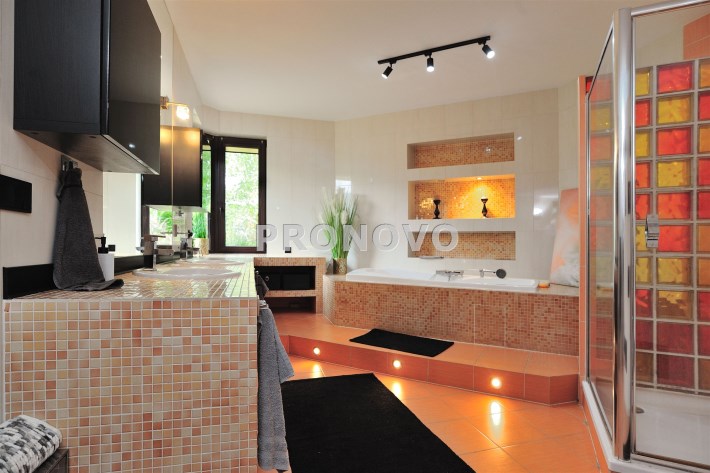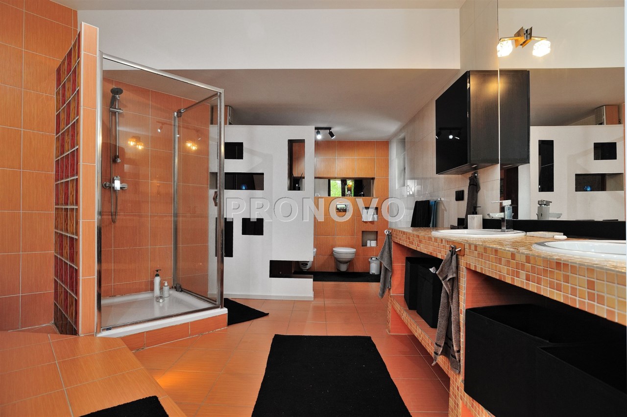• komfortowy salon kąpielowy z wanną, prysznicem i WC,