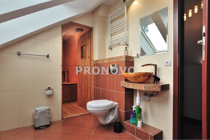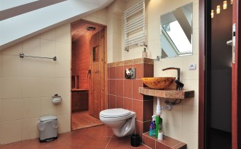 • łazienka z wanną, WC i sauną.