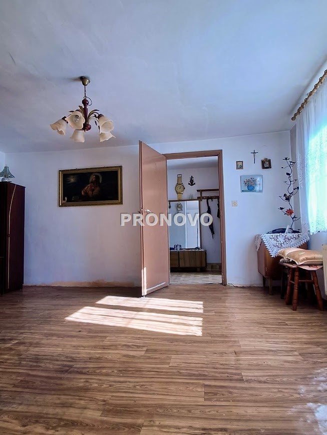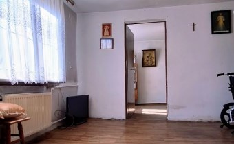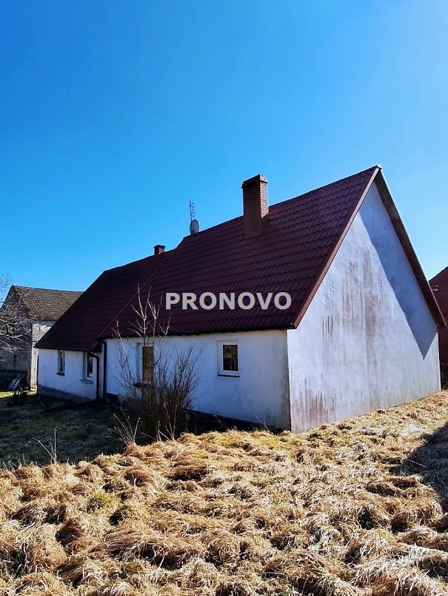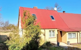 Na Sprzedaż Dom Bliźniak w spokojnej, cichej wiosce otoczonej polami i lasami. Dom o powierzchni ok. 70m2 , Dwa duże pokoje , duża kuchnia , duża łazienka , korytarz, przedsionek oraz duże poddasze. Dom bez barier architektonicznych - całość na parterze bez schodów. Dodatkowo budynki gospodarcze. Działka ok. 1650m2. Ogrzewanie piec kaflowy plus centralne na drewno.