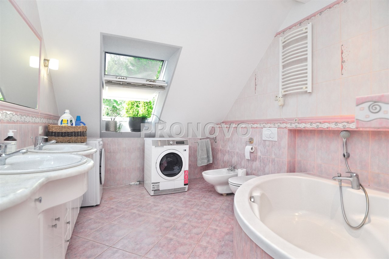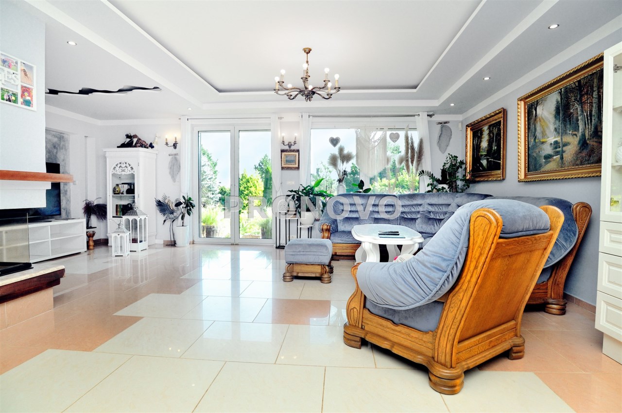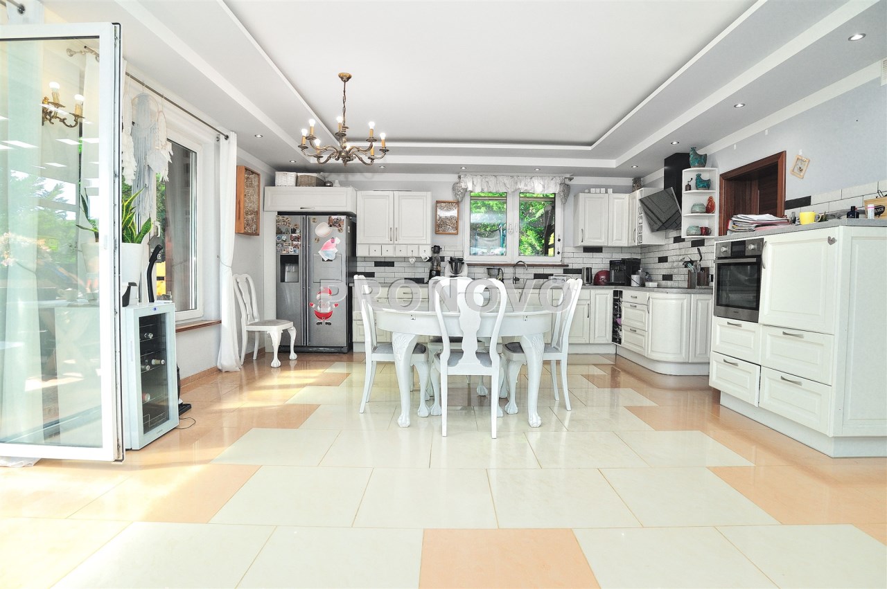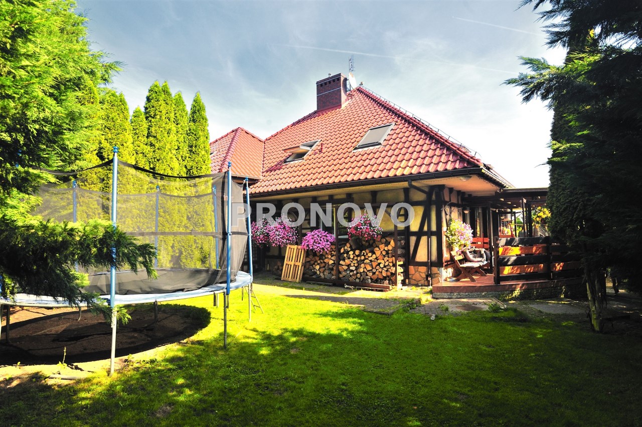 Dom wyposażony jest w nowoczesną instalację alarmową, fotowoltaikę, rolety antywłamaniowe, studnię głębinową.