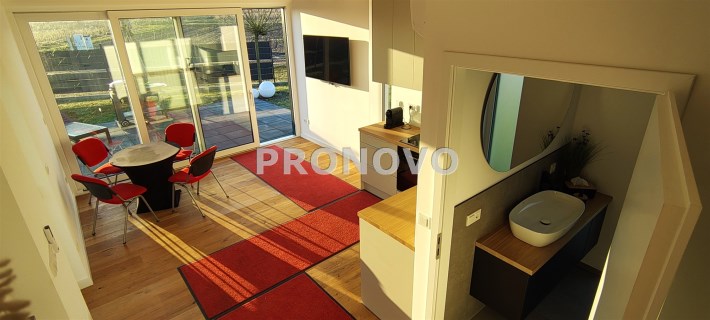 • Wysoki standard wykończenia: Domy zbudowane są z dbałością o każdy szczegół, z wykorzystaniem wysokiej jakości materiałów. (Okna SCHUCO 3 szybowe w systemie HST, podłogi deska dębowa olejowana, bloczki Ytong, kostka brukowa najwyższej jakości)