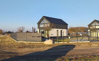 • DOM z ogrodem do zamieszkania od zaraz PROMOCJA CENOWA do końca grudnia 2025 r ! Możliwość dokupienia  nieruchomości gruntowej przyległej do domku. Gwarantowana jakość materiałów. Prosta nowoczesna bryła kryta dwuspadowym dachem, duże przeszklenie całej ściany elewacyjnej zakończone słonecznym tarasem.