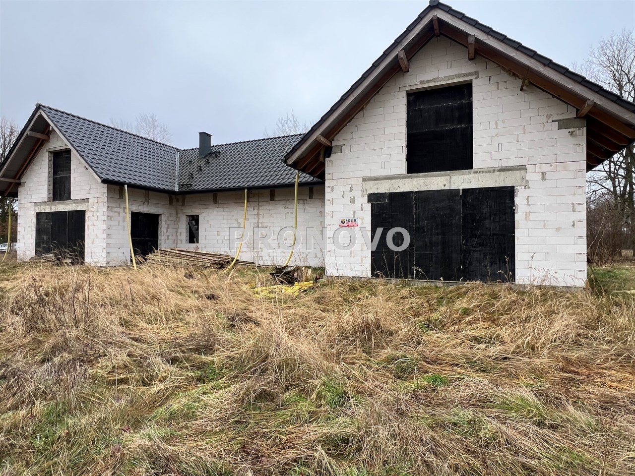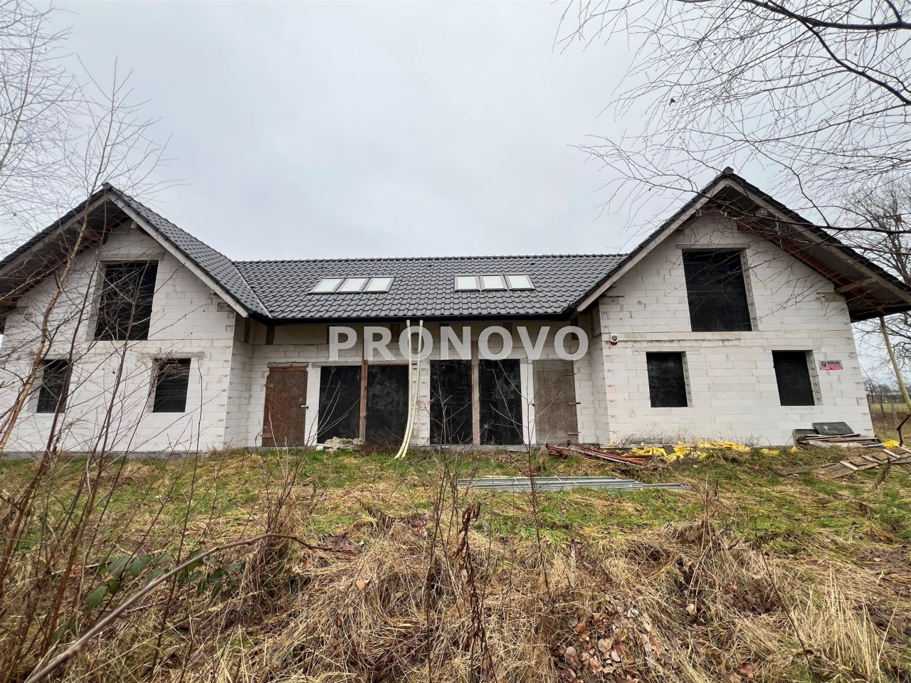 Budynek sprzedawany w stanie surowym otwartym, bez ścianek działowych w środku, aby nowy właściciel miał możliwość zmian i rozstawu pomieszczeń. Dach pokryty dachówką ceramiczną. Dojazd do działki drogą gruntową.