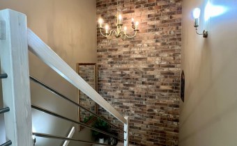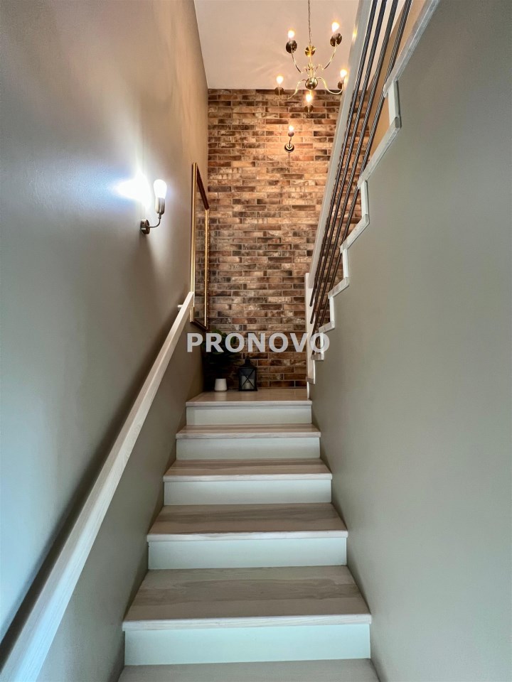 Na piętro prowadzą drewniane schody z jesionu barwionego.
