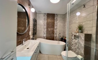 oraz  łazienka z wanną wolnostojąca i prysznicem.