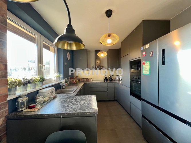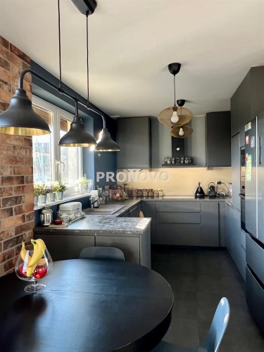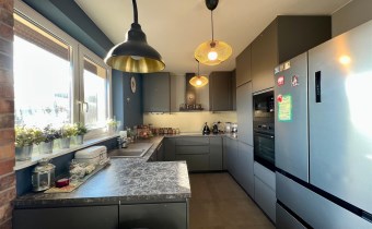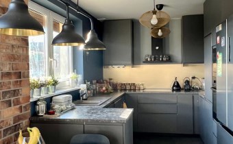 •    kuchnia w zabudowie wraz z wyposażeniem- piekarnik, mikrofala zmywarka, okap