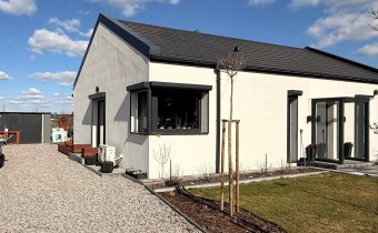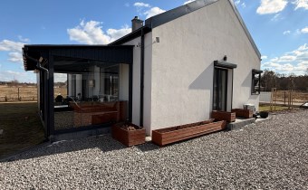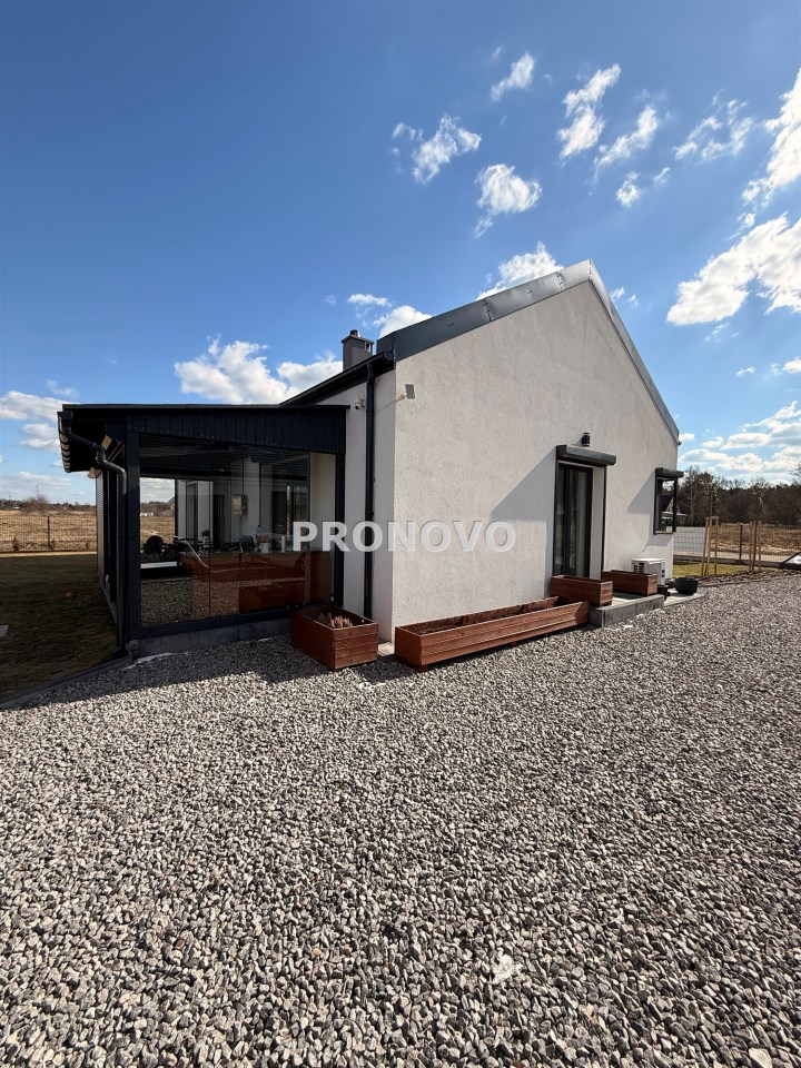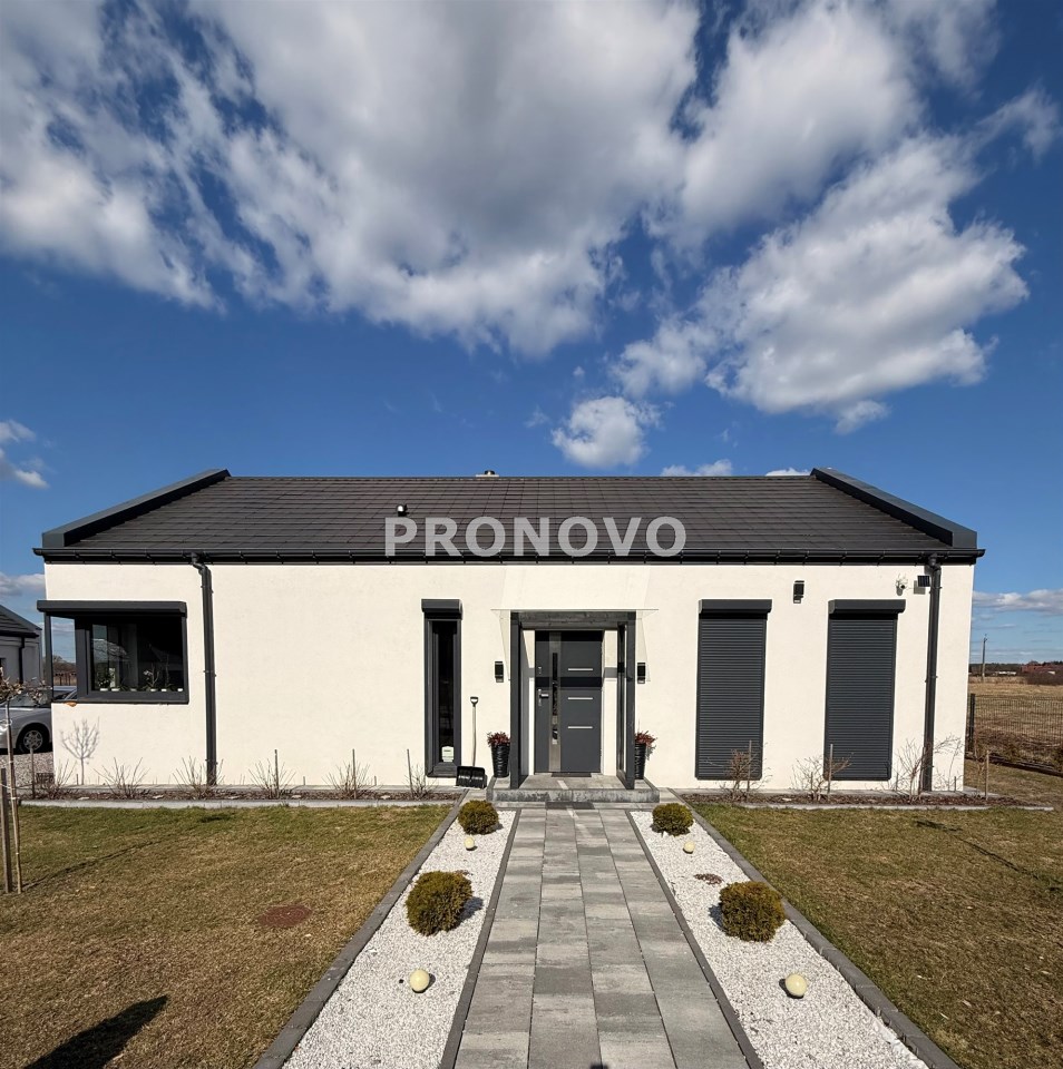 Dom został urządzony w spójnym, nowoczesnym stylu, z dbałością o detale i funkcjonalność. Idealna propozycja dla rodziny, pary lub osób szukających komfortowego domu bez schodów.