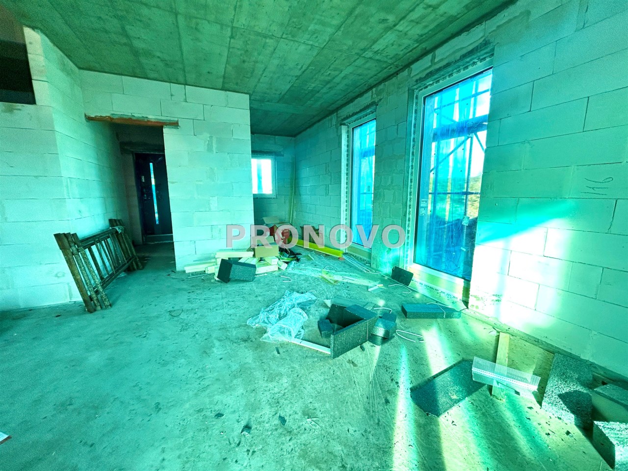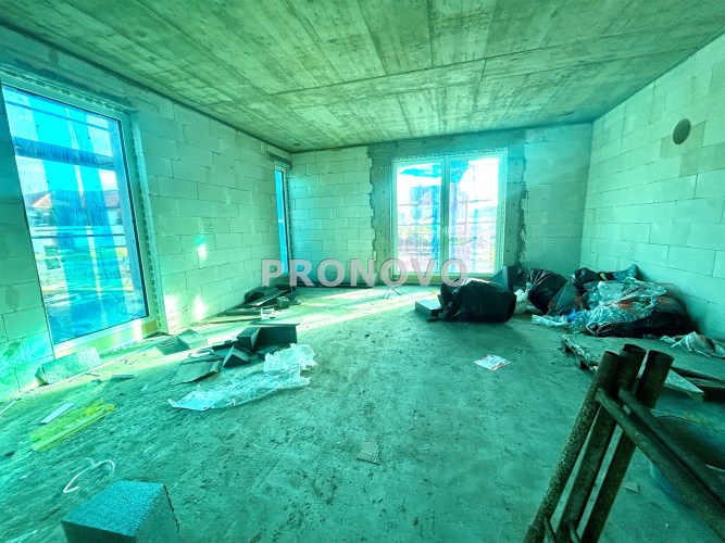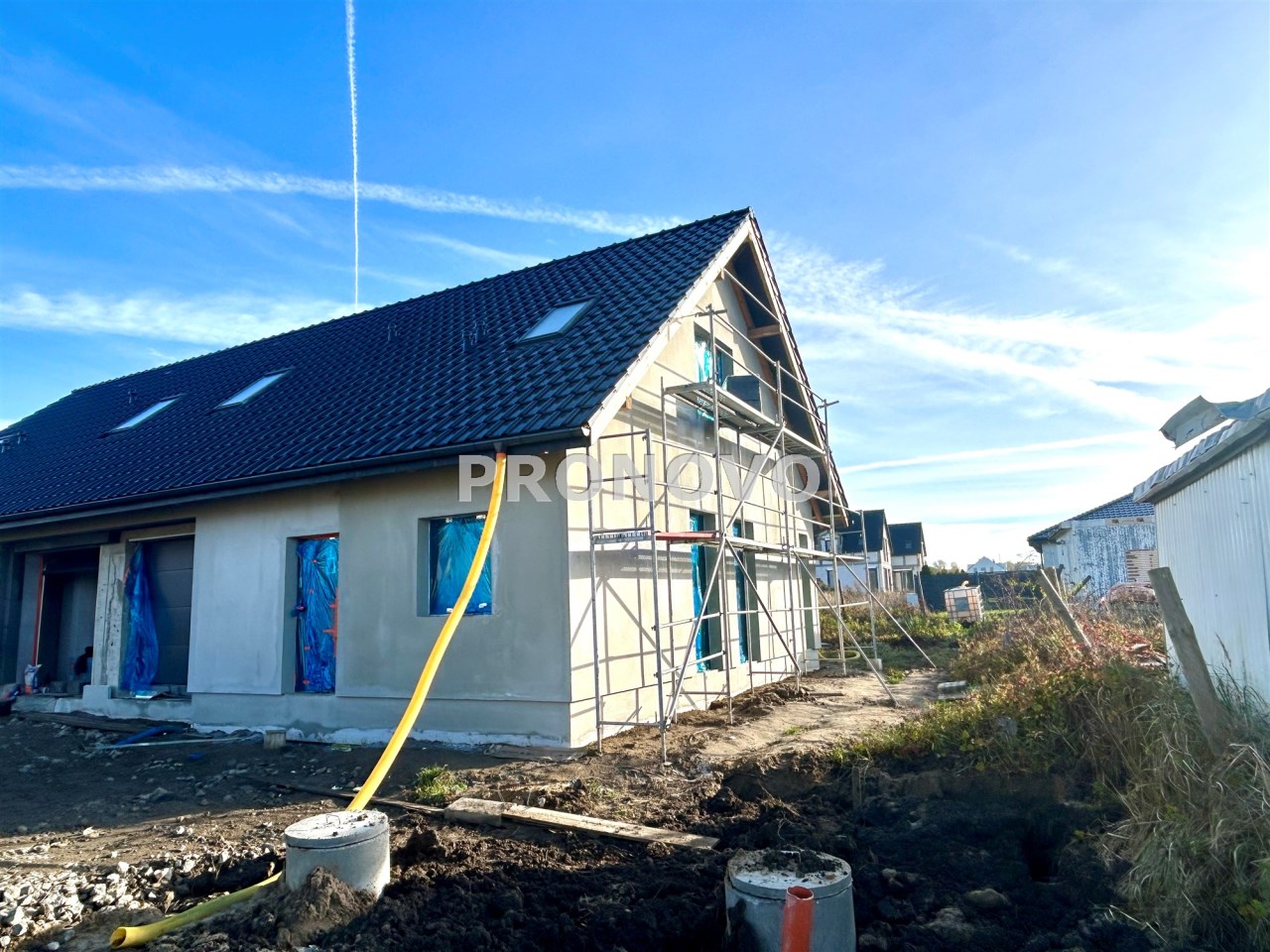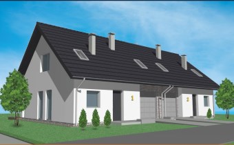 Dom jednorodzinny dwulokalowy w zabudowie bliźniaczej, na na działce 425 m2, o powierzchni użytkowej 130m2 powierzchni użytkowej. W projekcie podwójna ściana z dylatacją między sąsiadami co jest wymagane w zabudowie bliźniaczej a czego nikt z deweloperów nie stosuje w przypadku budynków dwulokalowych. Dostępne media: prąd, woda z wodociągu miejskiego, pompa ciepła, szambo.  Budynki w stanie deweloperskim z elewacją i mediami doprowadzonymi do budynku.  Budynki w tracie wykańczania, do wydania w I kwartale 2026 roku
