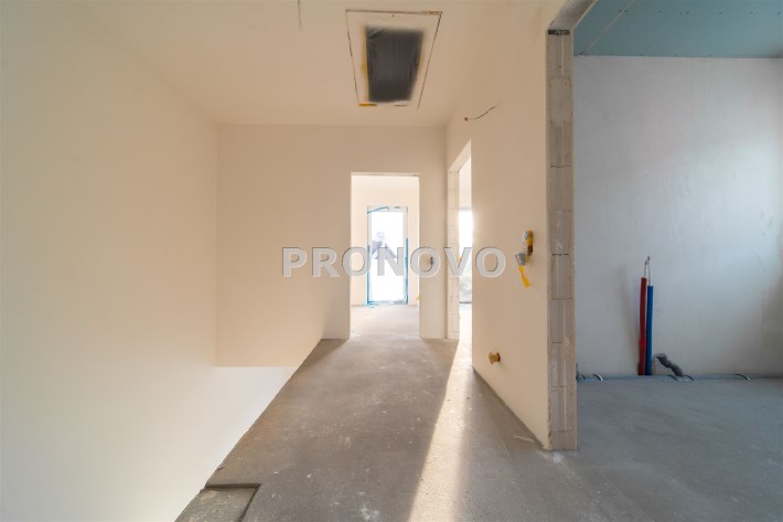 Parter : salon z aneksem kuchennym oraz wyjściem na taras i ogród od strony południowej, pokój idealny na biuro lub pokój gościnny, wiatrołap, łazienka oraz pomieszczenie gospodarcze.