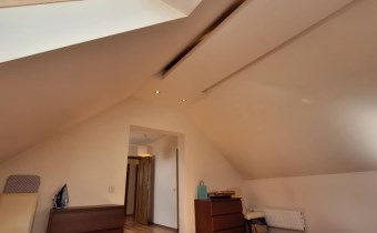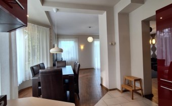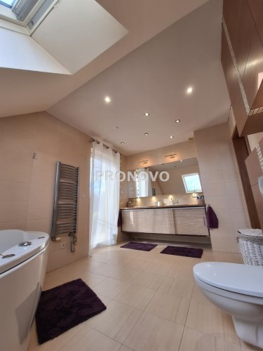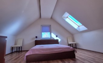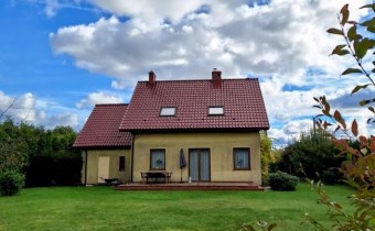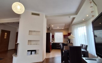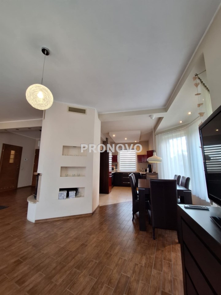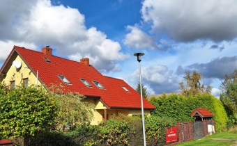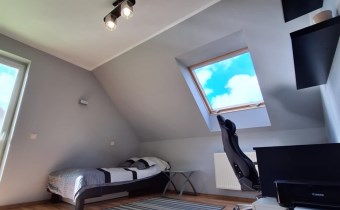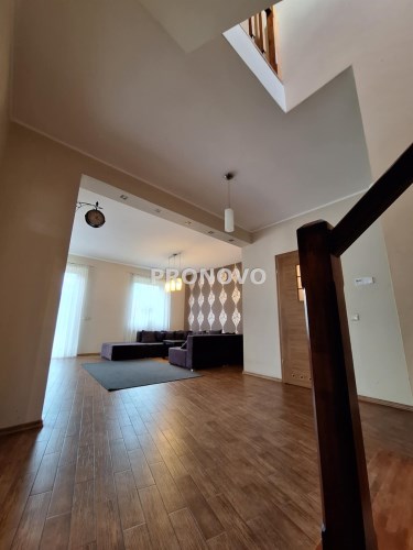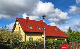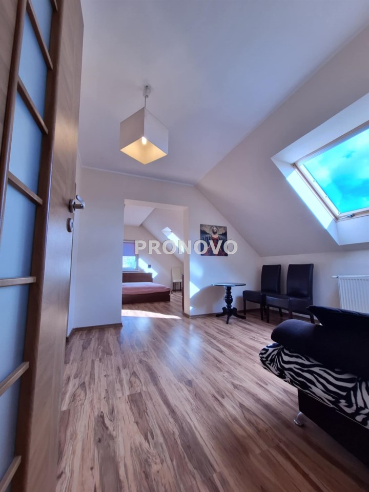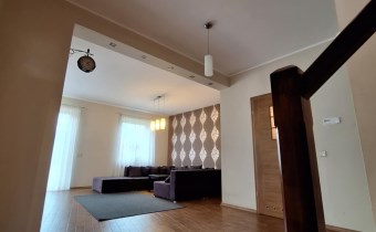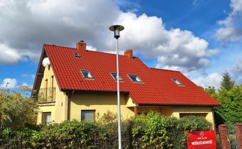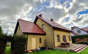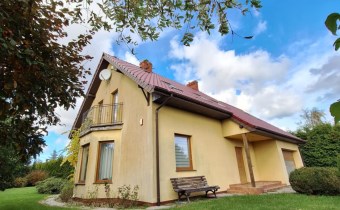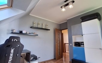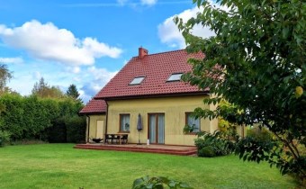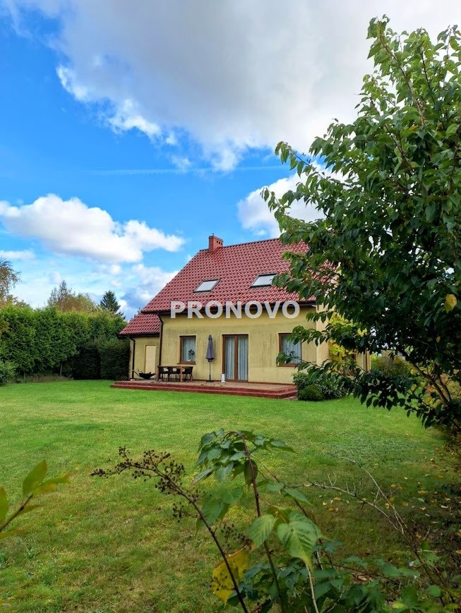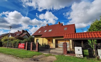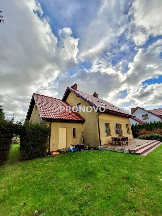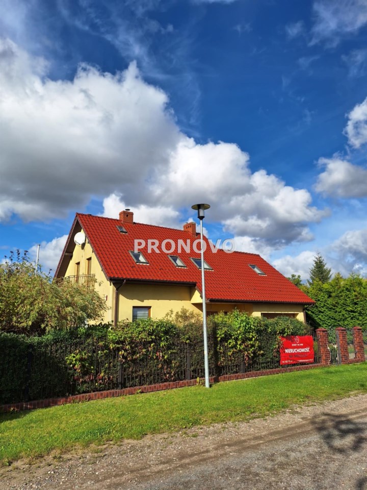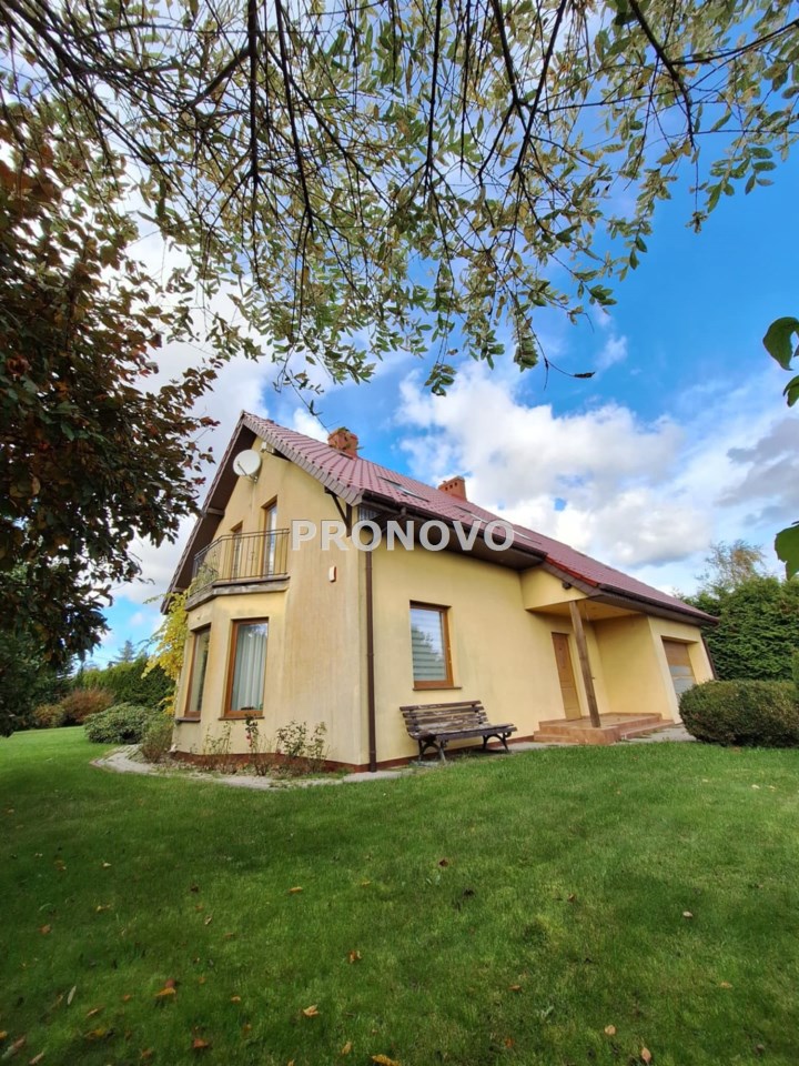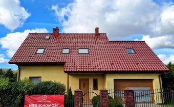 Dom wolnostojący ( około 145m2 ) zbudowany w 2006 roku oddany w 2007. Projekt domu: "gl-124-fistaszek" w projekcie zmiany - brak ściany w salonie oraz powiększenie garażu do 4m, garderoba w sypialni. Ściany zewnętrzne porotherm 24 +styropian. Prostokątna działka ( około 1000m2 ) z dużym potencjałem ok 30 m długości za domem. Dom funkcjonujący i bardzo funkcjonalny gotowy do zamieszkania, podzielony na strefy: dzienną (salon, wydzielona jadalnia i kuchnia oraz mała łazienka) oraz cześć dla domowników na poddaszu użytkowym (dwa pokoje, sypialnia z pokojem i garderobą oraz duża łazienka). Przestronny taras od strony zachodniej na całej szerokości domu (ok 32m2).