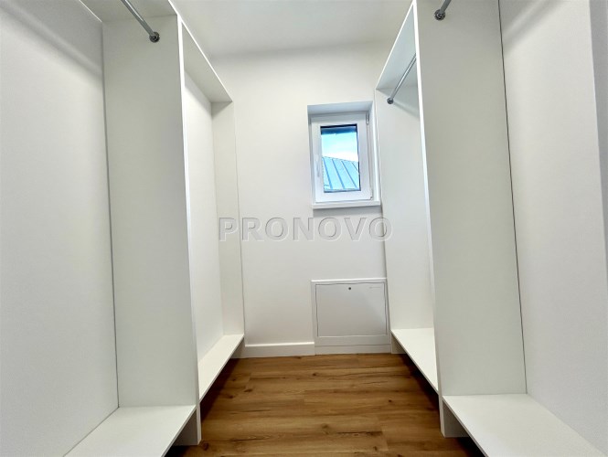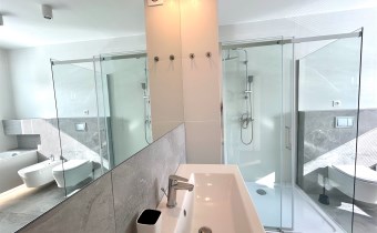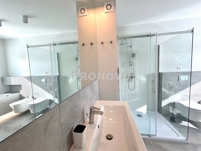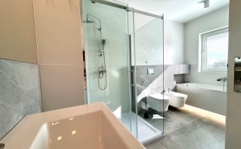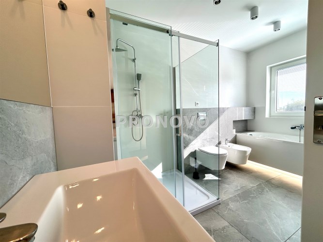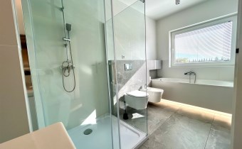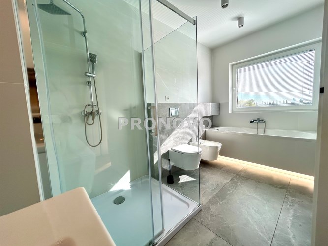 • Piętro: trzy sypialnie, garderoba, przestronna łazienka z wanną i prysznicem.
