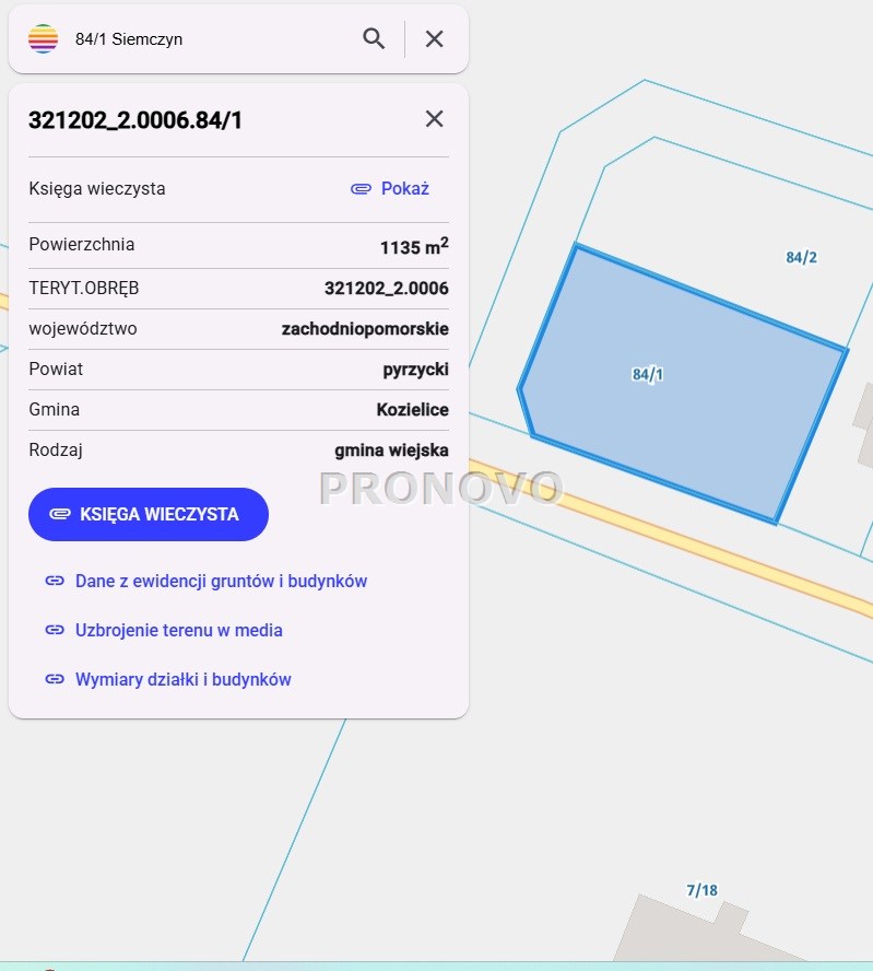 Działka niezabudowana o powierzchni 1134 m2. Grunt położony jest w miejscowości Siemczyn, zaledwie 12 minut od Pyrzyc. Zlokalizowana jest na zurbanizowanym terenie niezabudowanym w centrum wsi. W pobliżu znajduje się świetlica wiejska, boisko piłkarskie oraz sklep spożywczo-przemysłowy. Działka ma kształt prostokąta, o płaskim ukształtowaniu terenu. Dojazd do nieruchomości odbywa się bezpośrednio z drogi asfaltowej. Media znajdują się w drodze co czyni ją idealną propozycją pod zabudowę mieszkaniową w spokojnej i dobrze skomunikowanej okolicy.