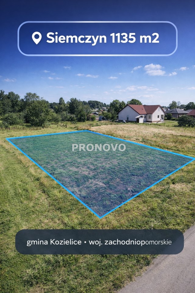 Na sprzedaż działka niezabudowana o powierzchni 1134 m², położona w miejscowości Siemczyn, zaledwie 12 minut od Pyrzyc. Nieruchomość usytuowana jest w centrum wsi, na terenie zurbanizowanym, w otoczeniu zabudowy mieszkalnej, co zapewnia komfort oraz poczucie bezpieczeństwa przyszłym właścicielom. W bezpośrednim sąsiedztwie znajdują się najważniejsze punkty infrastruktury lokalnej, takie jak świetlica wiejska, boisko piłkarskie oraz sklep spożywczo-przemysłowy, co czyni lokalizację wygodną do codziennego życia. Działka ma regularny, prostokątny kształt oraz płaskie ukształtowanie terenu, co znacząco ułatwia proces projektowania i realizacji zabudowy. Dojazd do nieruchomości odbywa się bezpośrednio z drogi asfaltowej, a media dostępne są w drodze, co stanowi duży atut inwestycyjny i obniża koszty przygotowania do budowy. To idealna propozycja pod zabudowę mieszkaniową jednorodzinną dla osób poszukujących spokojnego miejsca do życia, z jednoczesnym szybkim i wygodnym dojazdem do Pyrzyc oraz innych okolicznych miejscowości Pomorza Zachodniego.