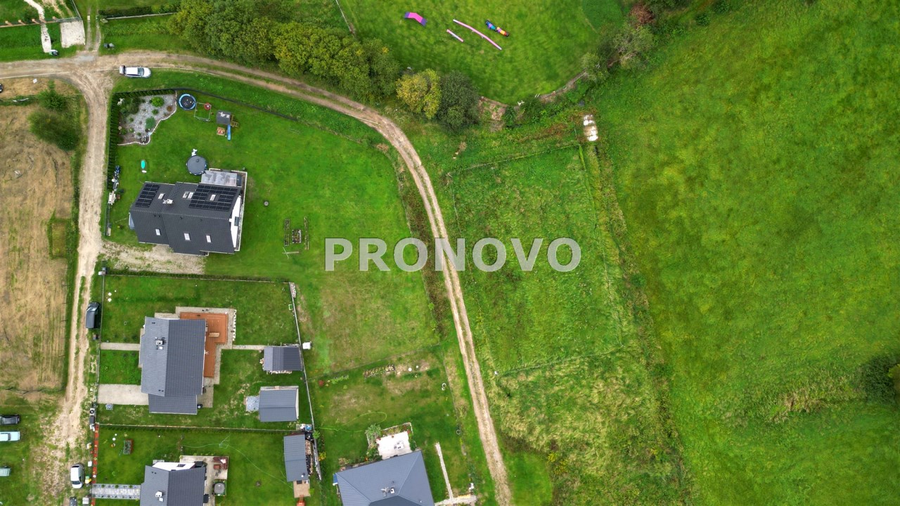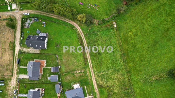 1029m2 położona jest w pieknym miejscu, przy drodze oddalonej od głównej ulicy. Działka graniczy z terenem ochrony Natura 2000, dzięki czemu mamy pewność, że nic nie zasłoni widoku na łąki. W najbliższym otoczeniu kompleks innych działek, tworzących mini osiedle domków jednorodzinnych.