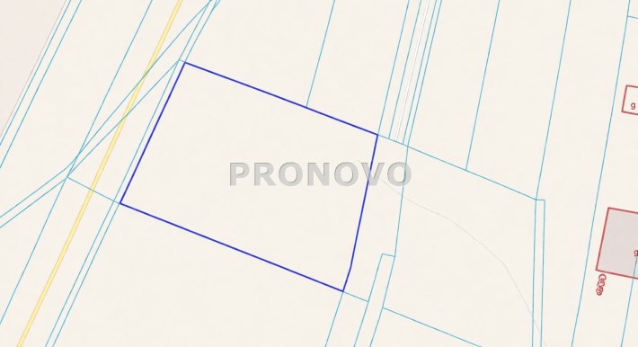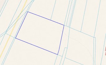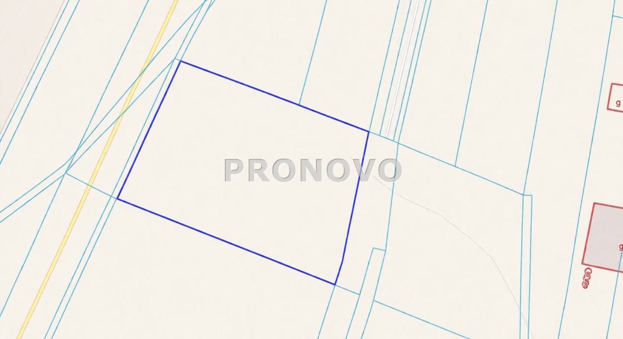 Działka o powierzchni 5198 m2 bezpośrednio przylega do dwóch dróg (wewnętrznej i krajowej). W równym kształcie prostokąta, płaska.
