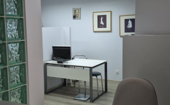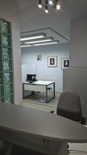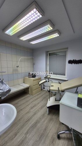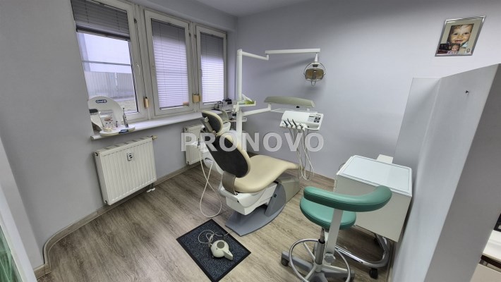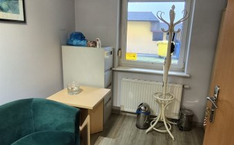 hol, obok jest poczekalnia z niej wejscie do pokoju socjalnego. WC dla pacjentów. Recepcja a za nią 2 gabinety. W głębi lokalu jest aneks kuchenny i łazienka z prysznicem. Niski czynsz ok 450 zł z funduszem remontowym, ogrzewaniem itp do dodatkowe zalety. Okna PCV, rolety, ściany w gładziach malowane, na podłogach są panele i płytki. Oferta również do wynajęcia za 5000 zł + opłaty. Klucze w biurze, oferta na wyłączność. Zapraszam