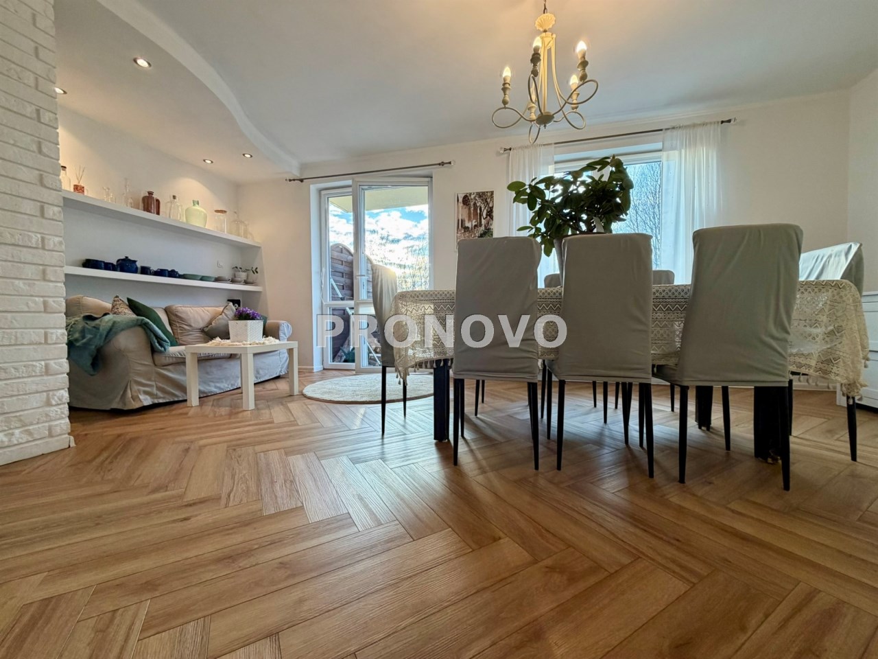 • przestronny salon z aneksem kuchennym – idealne miejsce do wspólnego spędzania czasu