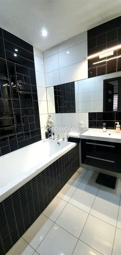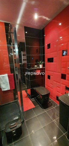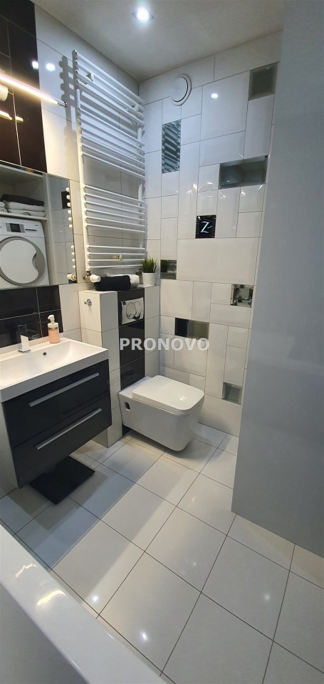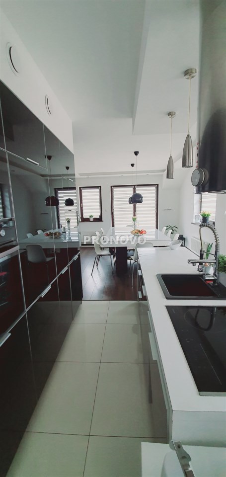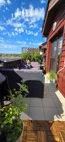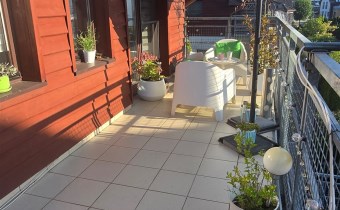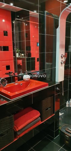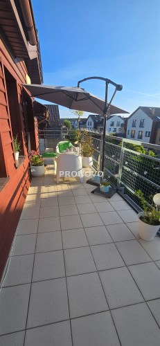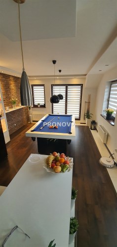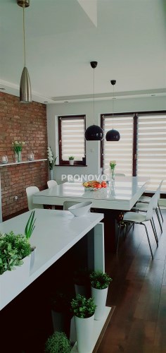 Mieszkanie 3 pok położone na II piętrze w budynku z cegły przy ul Kalinowej. Mieszkanie zaprojektowane wg własnego projektu, robi bardzo dobre wrażenie. Salon z jadalnią i kuchnią tworzy jedną całość. Kształt prostokątny, w środkowej części jest kuchnia z wyspą, po prawej stronie jest salon z wyjściem na taras. Po lewej stronie od kuchni jest jadalnia. Właściciele wykorzystali stół bilardowy przykrywając go blatem. Ten mebel ma "podwójną funkcję". Na co dzień jadalnianą, a gdy mieszkańcy zechcą zdejmują blat i mają stół bilardowy. Z jadalni jest wyjście na kolejny taras. Duży przedpokój ma prawie 10 m2. Jeden z pokoi ma 10,10 m2, obok jest łazienka z wanną, WC. Kolejny pokój ma 9,4 m2 ( sypialnia) z własną łazienką. Nad mieszkaniem jest powierzchnia poddasza ok 50 m2 ( liczona po podłodze). Obecnie śluzy jako magazynek, lecz może być w łatwy sposób dołączona do mieszkania i tym samym zyskuje eis dodatkowy pokój. Czynsz liczony dla 3 osób wynosi 500 zł . Ogrzewanie miejskie z SEC. W mieszkaniu poza siedziskami i kanapą w salonie może pozostać w cenie większość mebli. Okolica urokliwa, z każdej strony tereny zielone . Sklepy, przychodnia, szkoła. Do przystanku autobusowego jest parę minut. Do mieszkania przynależy piwnica ( 5,6 m2). Jest możliwość zakupu miejsca postojowego w garażu podziemnym za 100 000 zł . Termin wydania do uzgodnienia. Oferta na wyłączność. Zapraszam