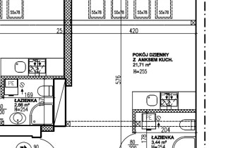 - pokój dzienny z aneksem kuchennym 21,71 m2,