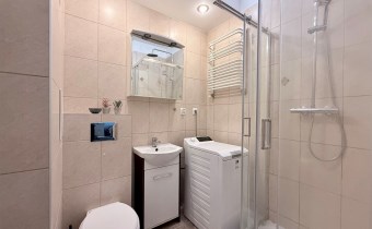 łazienka z kabiną prysznicową, dodatkowo wyposażona w elektryczne ogrzewanie podłogowe