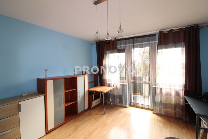 Nieruchomość składa się z przedpokoju, dużego salonu z wyjściem na słoneczny balkon z widokiem na zieleń, sporych rozmiarów łazienki oraz osobnej kuchni z oknem.