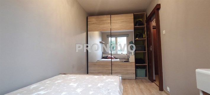 Sypialnia o powierzchni ok. 10 m2 z zabudową. Podłoga z paneli dobrej jakości.