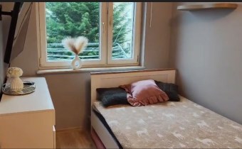 Sypialnia o powierzchni ok. 10 m2 z zabudową. Podłoga z paneli dobrej jakości.