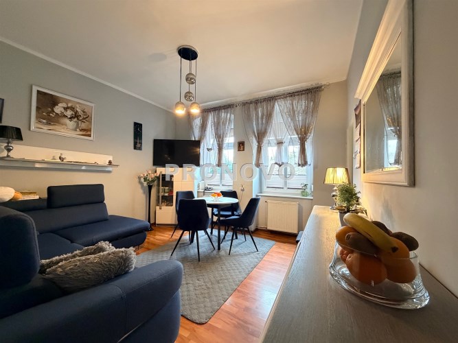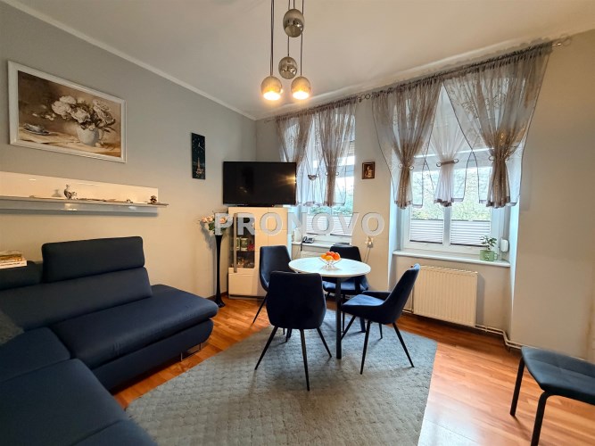 Mieszkanie składa się z dwóch ustawnych pokoi, jasnej kuchni, łazienki oraz przedpokoju. Położone na parterze, będzie idealną propozycją dla osób poszukujących wygodnego układu bez schodów – świetne również dla seniorów lub osób z ograniczoną mobilnością.