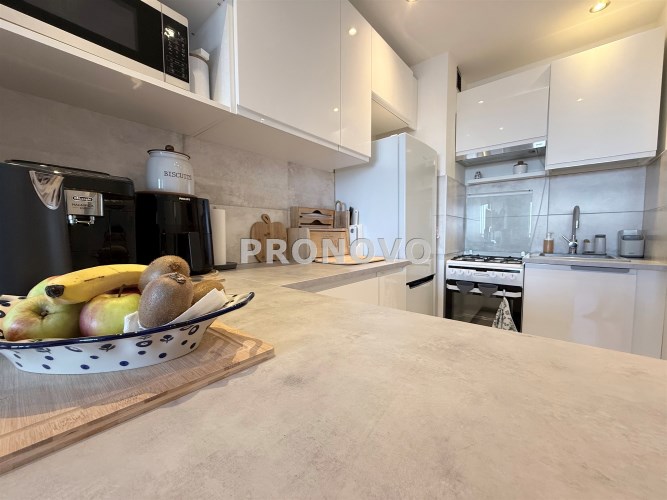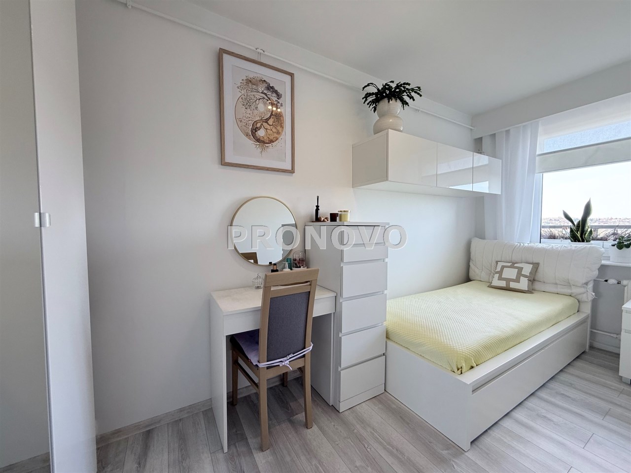 Dużym atutem nieruchomości jest balkon z widokiem na panoramę miasta, który zapewnia świetne doświetlenie oraz przyjemne miejsce do relaksu.