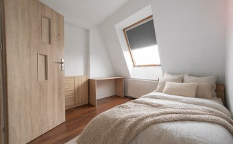 Nieinwazyjne skosy, prawidłowo wykonana adaptacja poddasza w postaci izolacji dachu. W kamienicy wymieniony dach, piony wodno-kanalizacyjne.