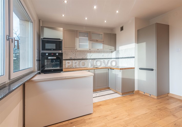 Mieszkanie po kapitalnym remoncie. W pokojach na podłodze nowa deska dębowa, ściany gładzone, malowane stolarka drzwiowa wewnętrzna bezprzylgowa, zamki magnetyczne. Nowe trzyszybowe okna PCV z filtrem UV - okna weneckie, nie są potrzebne rolety lub zasłony. Parapety wewnętrzne wykonane z granitu królewskiego z zatopionymi żyłkami złota.