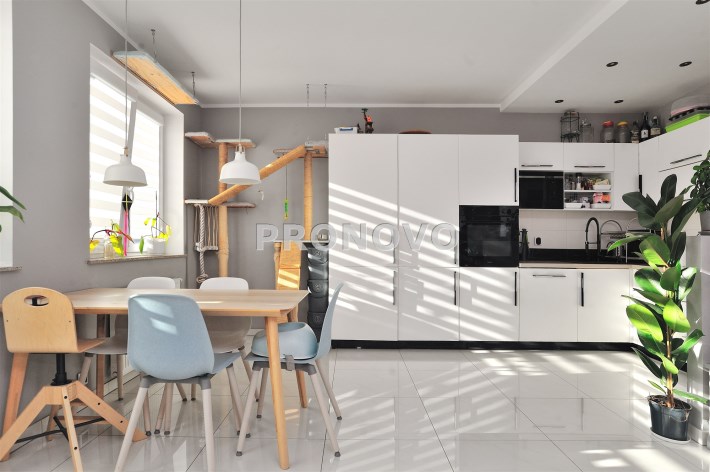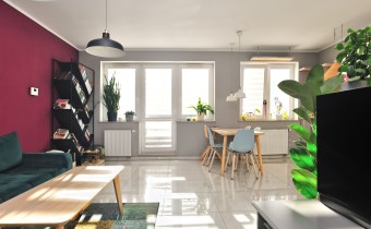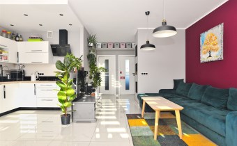 • Przestronny salon z otwartą kuchnią (29,3 m²) - wraz z wyjściem na balkon.